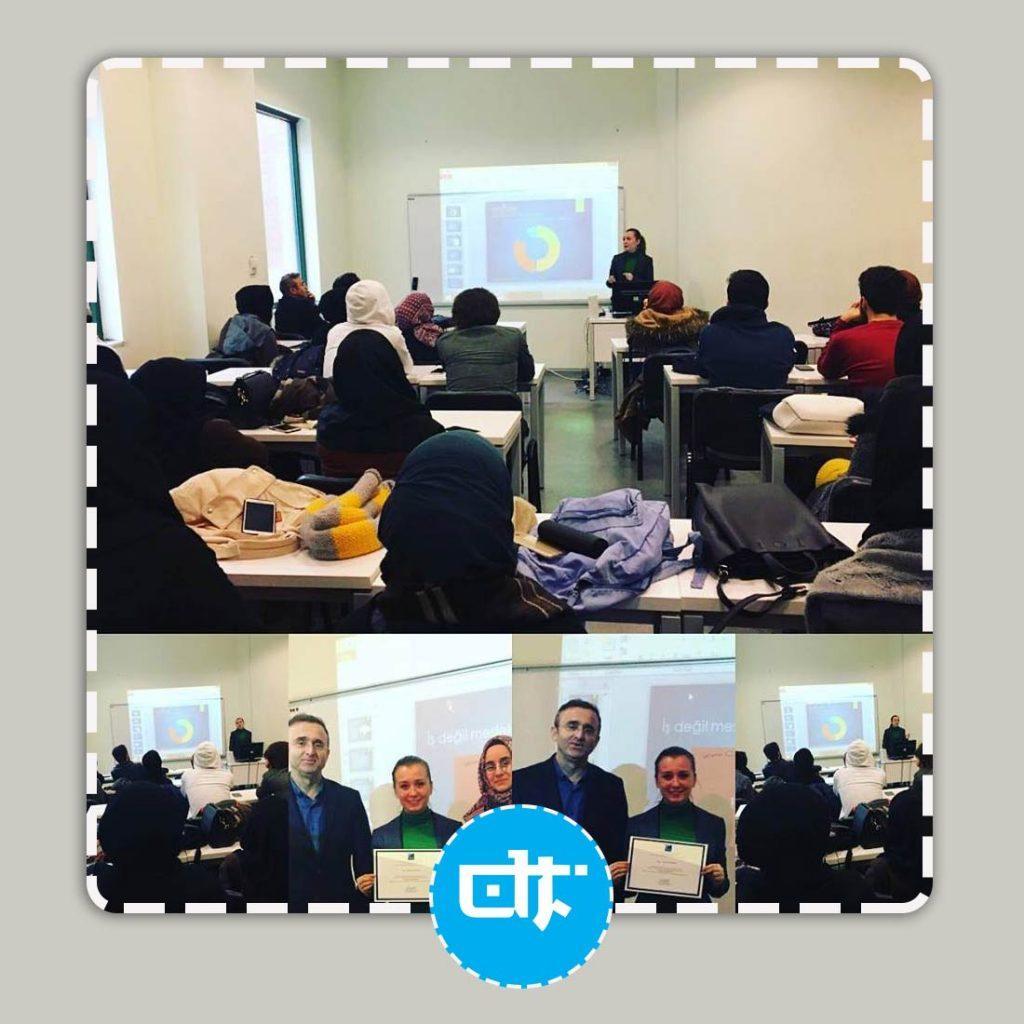 Dijital Tercüme olarak, Arapça çeviride kalite ve kariyer planlama üzerine 29 Mayıs Üniversitesinde geleceğin Arapça çevirmenleriyle beraberdik. Arapça çeviride uzmanlık alanları, çeviride izlenmesi gereken yollar, kontrol süreçleri, lehçeler, çeviri etiği ve çalışma prensipleri hakkında 2 saatten fazla süren sunumumuzun sonunda bizi teşekkür belgesiyle onurlandırdılar.