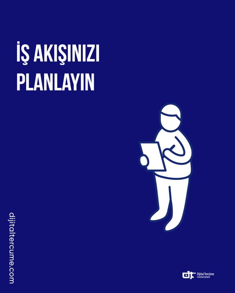 Serbest çevirmenler için çalışma saatleri farklılık gösterebilir. Kimi kendini gece daha verimli hissederken, kimi de gündüzleri çeviri yapıp akşamları dinlenmeye ayırmayı tercih eder. Etkin çalışmanın kesişim noktasında ise planlama yer almaktadır. İçinde bulunduğumuz bağlamın dünü, bugünü ve yarınını analiz edip organize etmeden sadece gelen işleri tamamlayarak ertesi güne ulaşma hedefi, sizi kısa vadede başarı getirse de uzun vadede sıkıntıya sokacaktır. Bu yüzden çalışmalarınızı uzun, orta ve kısa dönemli hedefler için kategorize ederek gününüzü, haftanızı, aylarınızı ve yıllarınızı planlayın. Bu ilk başta bir zaman kaybı gibi gözükse de hedefleriniz doğrultusunda çalıştığınız için size ivme kazandıracaktır. Örneğin ertesi gün 12’ye kadar tamamlamanız gereken 3 çeviri projesi var. Biri 2000, diğeri 300 kelime, diğeri 100 kelimeden oluşuyor. Bütün gününüzü bu 3 projeyle doldurarak tamamlamanız size deneyim, terim bilgisi ve tabii ki emeğinizin karşılığı olan ücretiniz doğrultusunda kazanç sağlayacaktır. Fakat bütün projeleri art arda yapmak hızlıca yorulmanıza sebep olacak ve sonrasında hedeflerinize erişmek için enerji bırakmayacaktır.