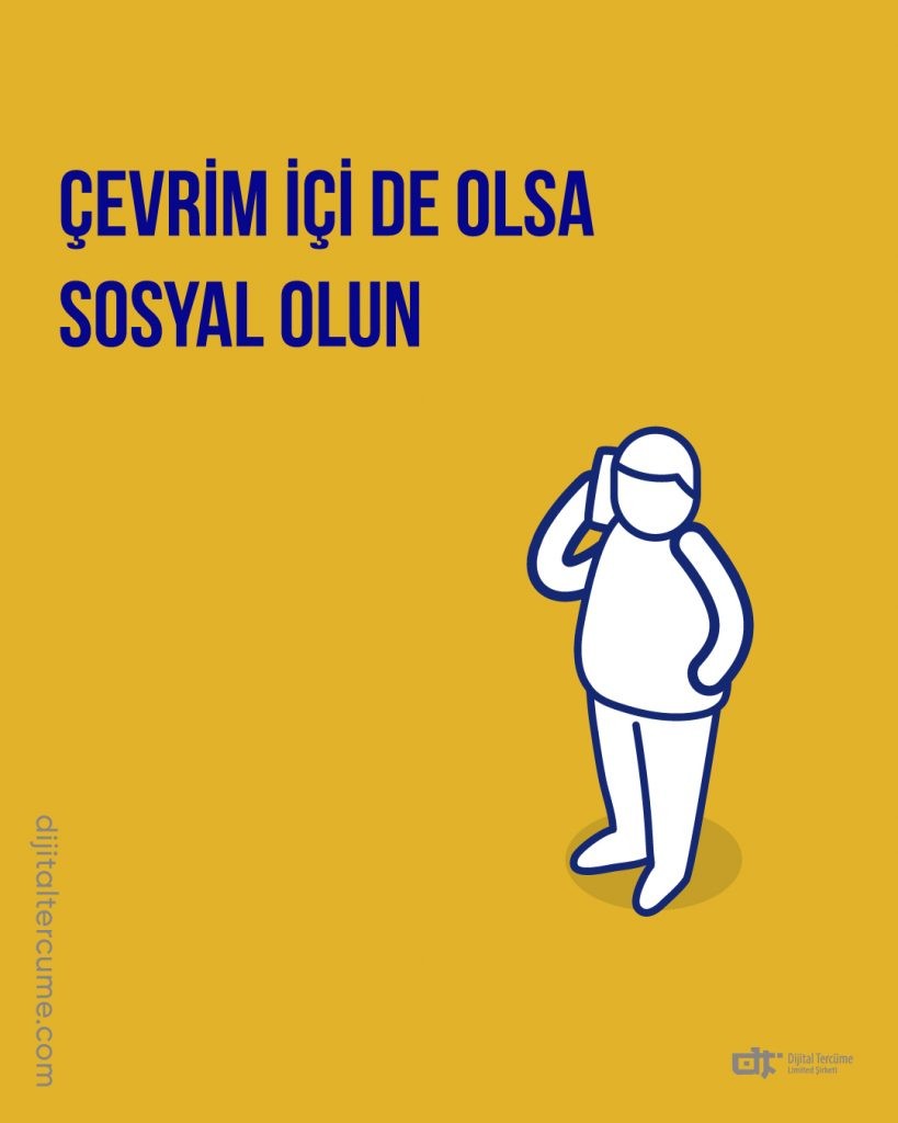 Evden çıkmak için çok fazla vaktiniz olmasa bile teknolojinin nimetlerini kullanarak dost, akraba ve iş arkadaşlarınızla iletişim halinde olun, gündemi takip edin, bağlantılarınızla sohbet edin. Sosyal olmak ve sosyal kalmak tercih ettiğiniz bir yöntem değilse bile çeviri ve çevirmen bloglarında meslektaşlarınızla dertleşin, seminer ve atölyelere katılın. Kendinizi ve mesleki konumunuzu güncel tutun.