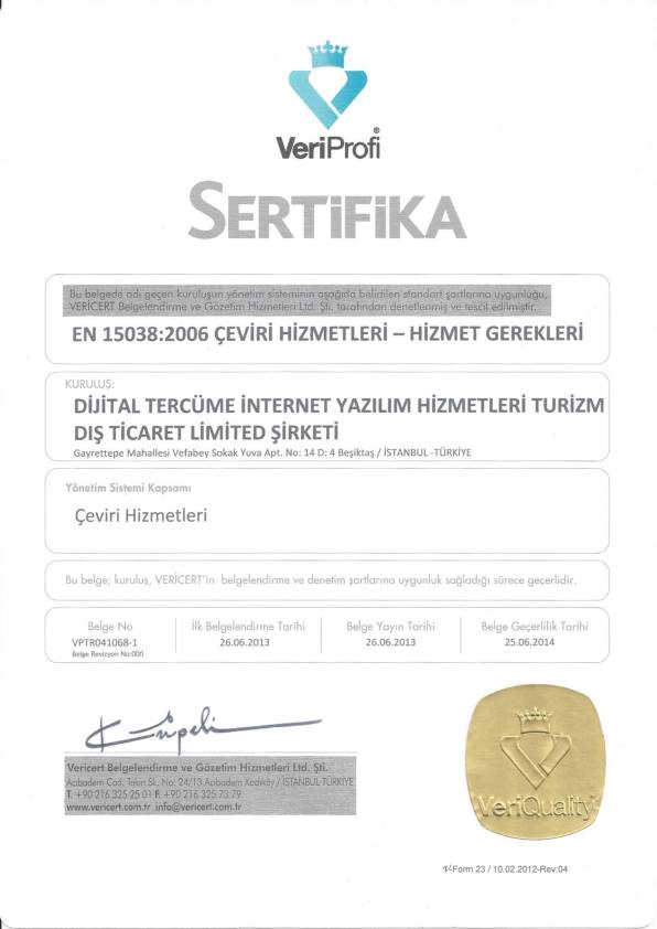 Bir çeviri firmasının uluslararası arenada geçerli olan çeviri kalite belgesi EN 15038′e sahip olması sadece tanıtım ve marka […]