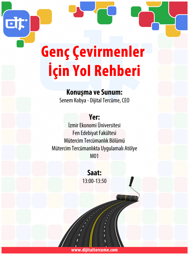 Çeviri Kitabı’nda yer alan Genç Çevirmenler için Yol Rehberi yazısı ile mütercim tercümanlık, çeviribilim veya uygulamalı çevirmenlik öğrencilerine daha iyi bir çevirmen olabilmek için neler yapılması gerektiğine dair bir yol haritası çizmeyi hedefleyen; “Nerede staj yapabilirim? Nasıl tecrübe edinebilirim? Nasıl yeminli çevirmen olabilirim? İkinci dil olarak hangi dili seçeyim? Hangisinde iş bulma ihtimalim daha çok? Hangi dilde çevirmen olursam daha çok kazanırım?” Uzmanlık alanımı neye göre seçmeliyim?” vb sorulara yanıt vermeyi amaçlayan Dijital Tercüme CEO’su Senem Kobya konuşma ve bu konudaki sunumu ile İzmir Ekonomi Üniversitesi; Fen Edebiyat Fakültesi; Mütercim Tercümanlık Bölümü’nde! Mütercim Tercümanlıkta Uygulamalı Atölye dersi kapsamında M01 amfisinde saat 13:00-13:50 arasında kendi tabiriyle “genç çevirmenlerle” buluşuyor..