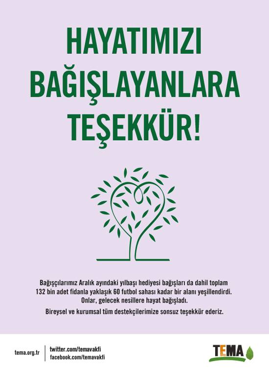 Tema geçtiğimiz hafta sosyal medyada ekteki görselle birlikte şu yazıyı yayınladı:”Hayatımızı bağışlayanlara teşekkür!Bağışçılarımız Aralık ayındaki yılbaşı hediyesi bağışları […]