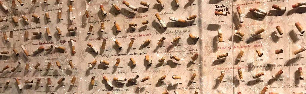 Müzenin girişindeki duvarda tam 4213 tane sigara izmariti sergileniyor… Bu izmaritlerin sırrını Orhan Pamuk’tan okumak gerekir;