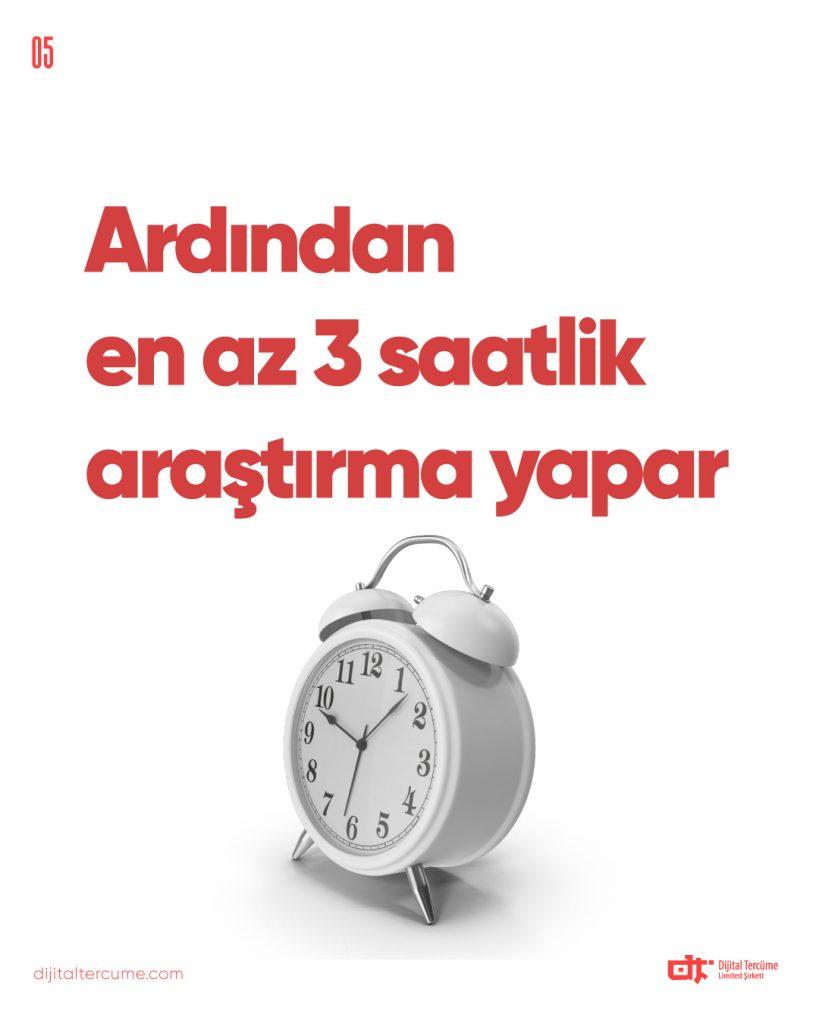 Ardından en az 3 saatlik araştırma yapar.
